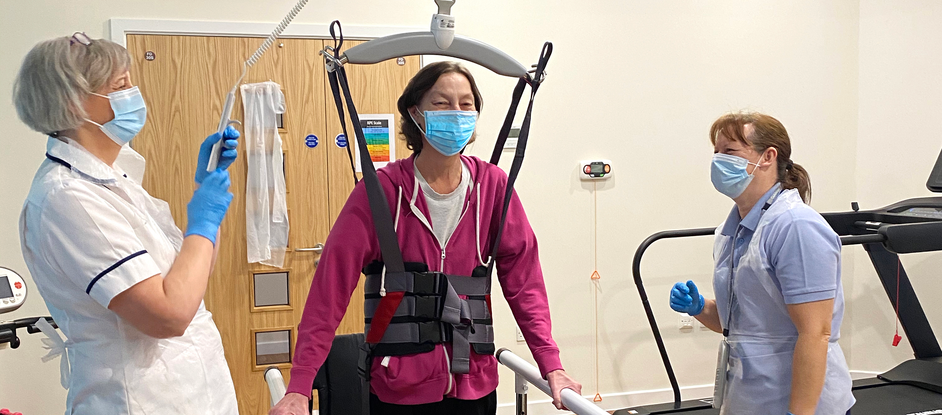 State-of-the-art rehabilitation equipment is changing the way physiotherapists at Nightingale House rehabilitate their patients. Thanks to donations it has been possible to purchase a ceiling hoist system with dynamic weight support. It is now installed in the hospice’s brand-new gym and rehabilitation centre.