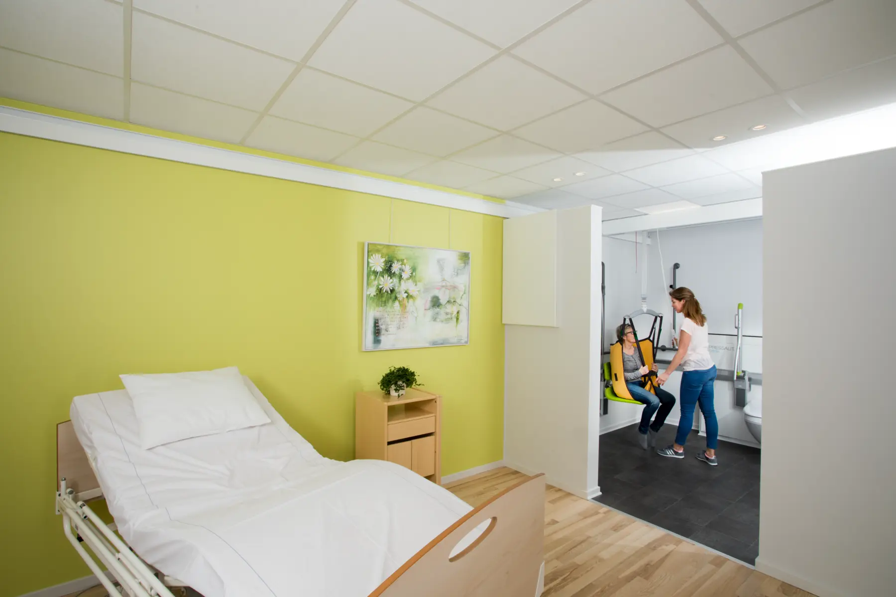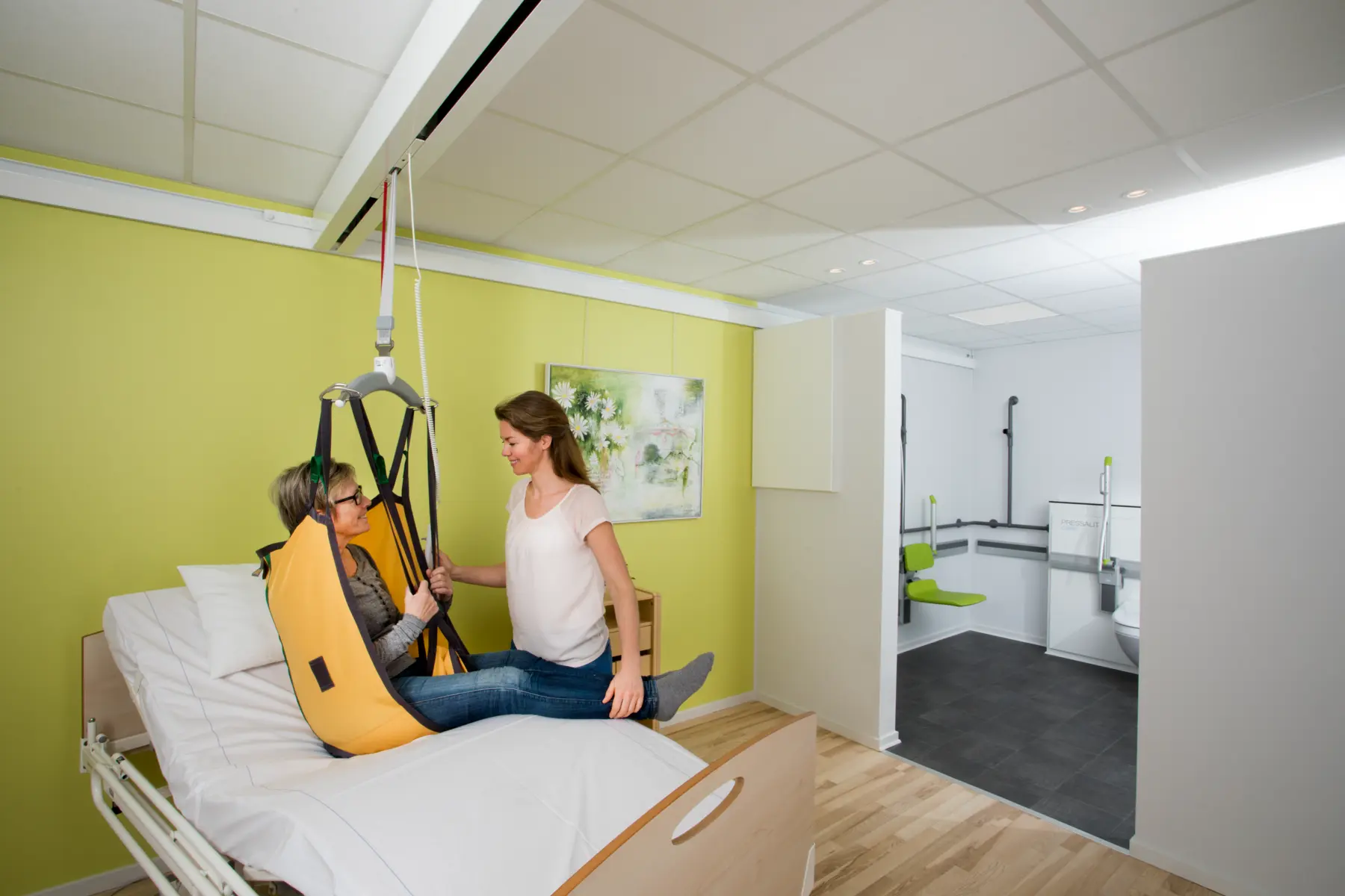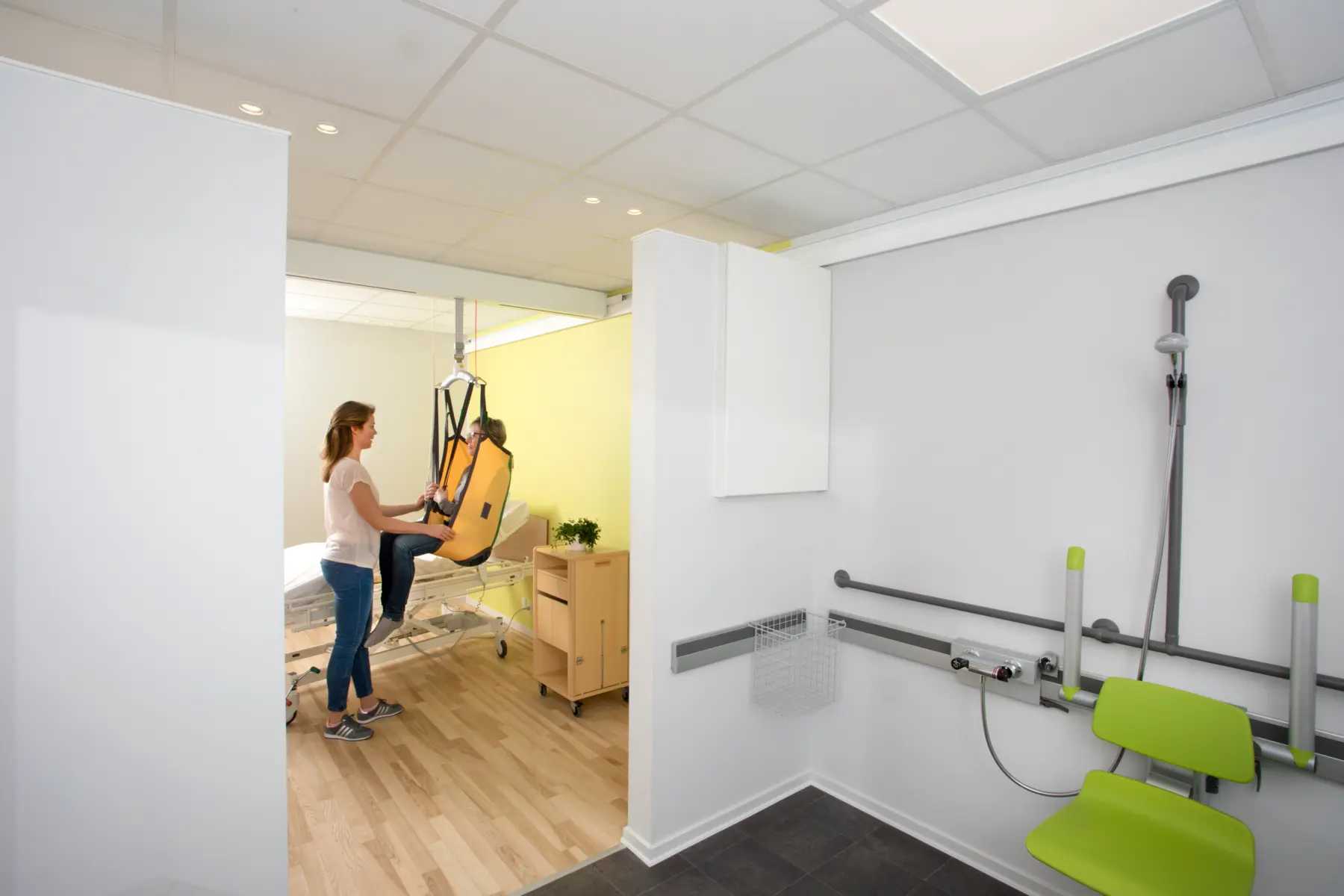 The GHZ is a discreet – almost invisible – lifting module that ensures safe and comfortable lifts and an ergonomically safe working environment for care staff. The lifting module runs along the traverse rail, minimising the embedding dimensions and allowing extra lifting height, which can be a major benefit in rooms with low ceilings.