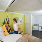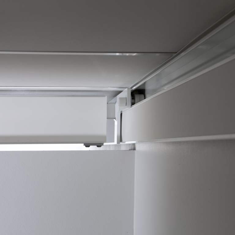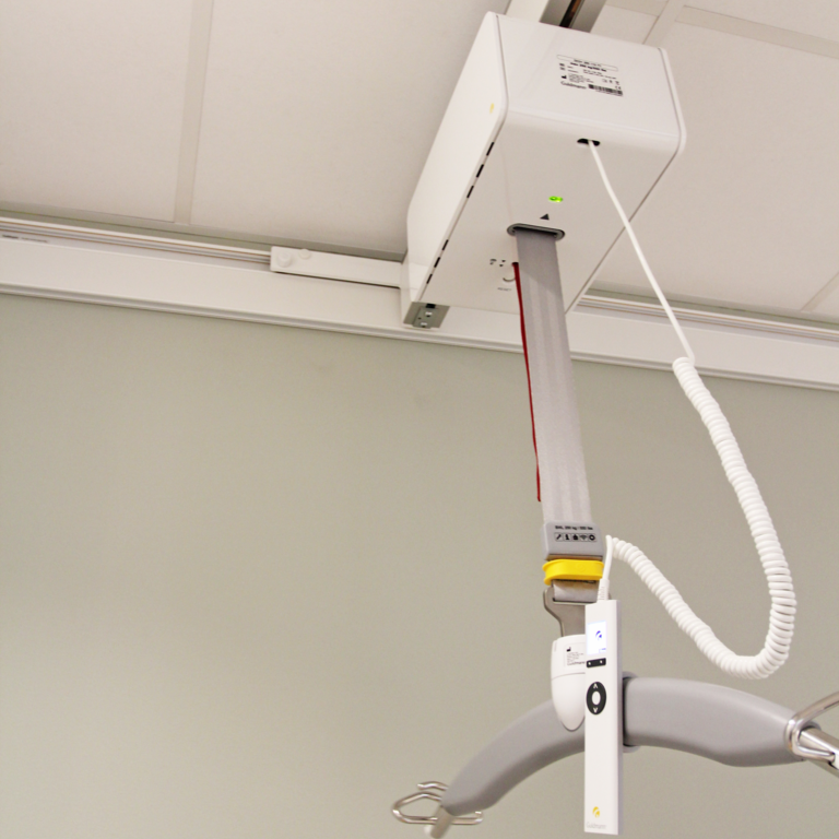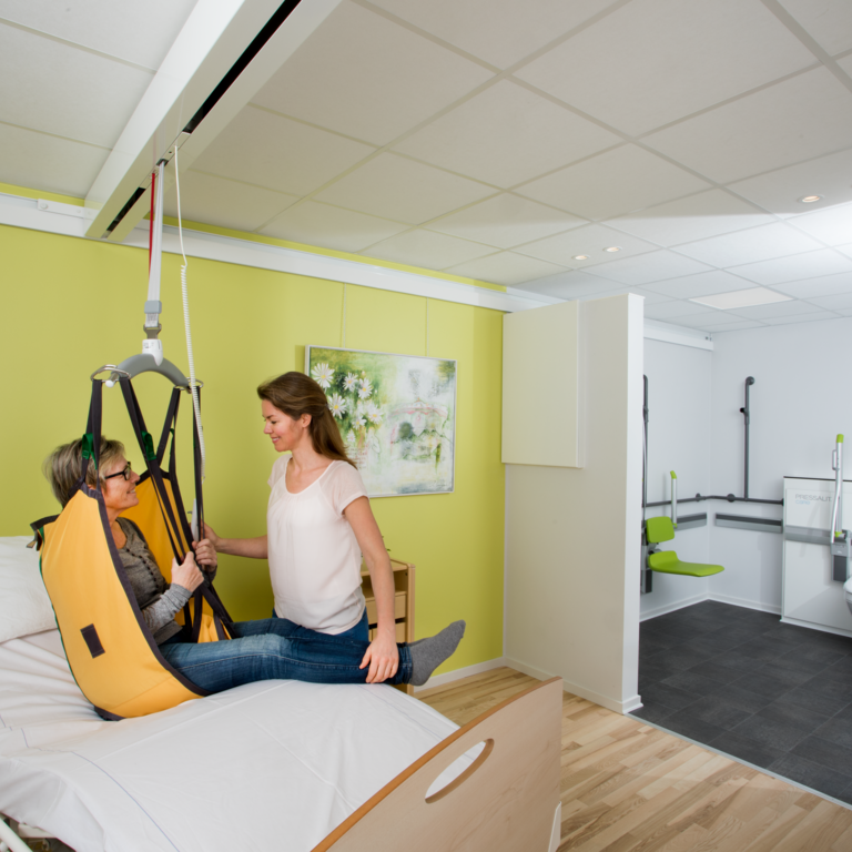 A continuous rail system provides complete coverage and efficient transfer from room to room – from the bedroom to bathroom, for example (see photo).