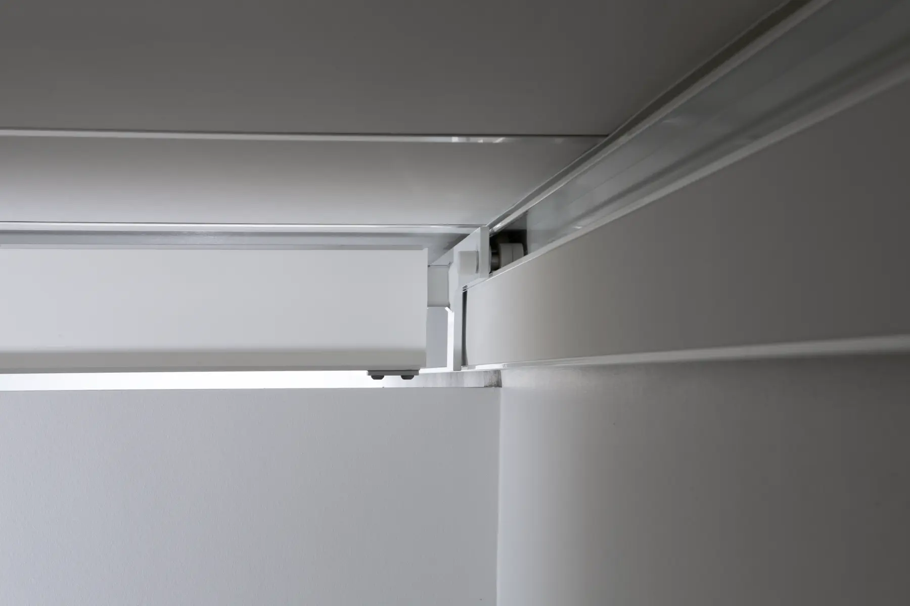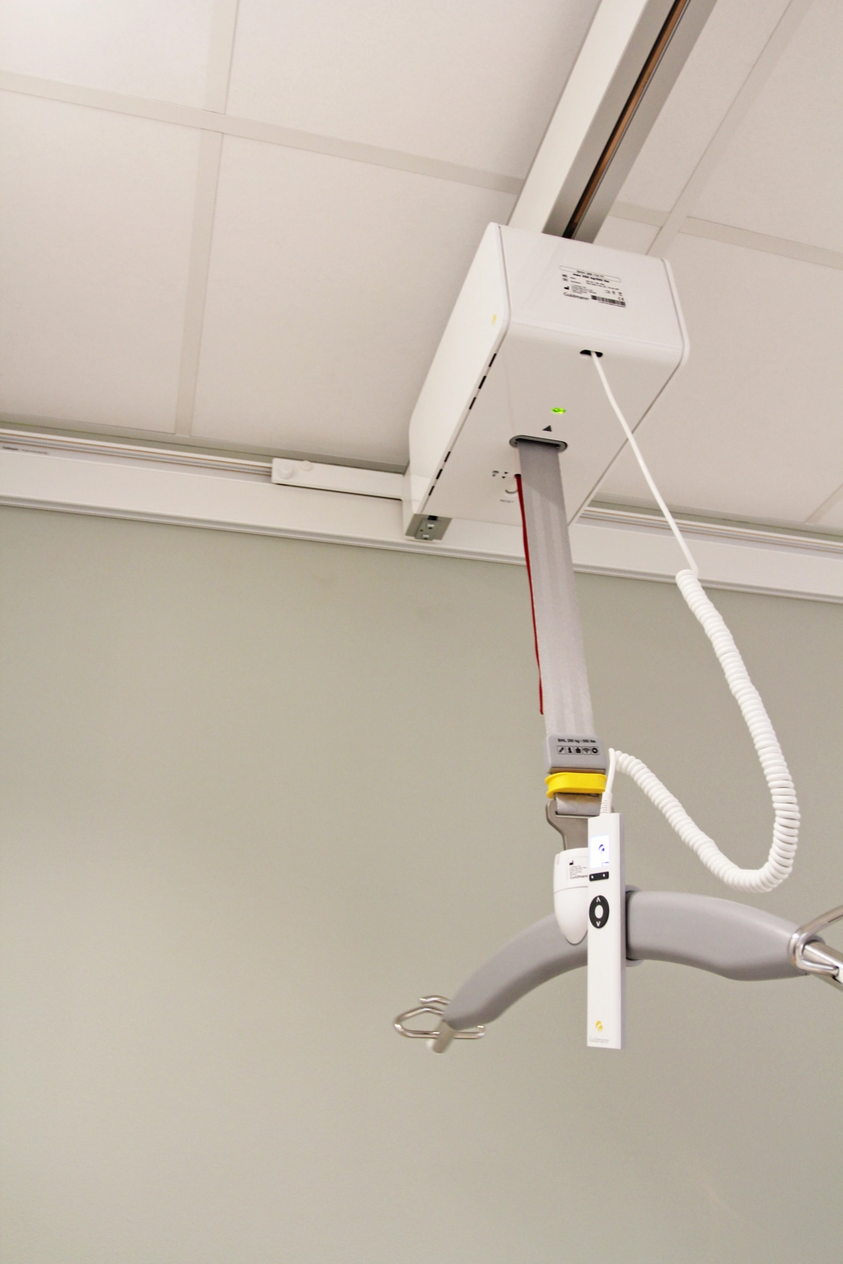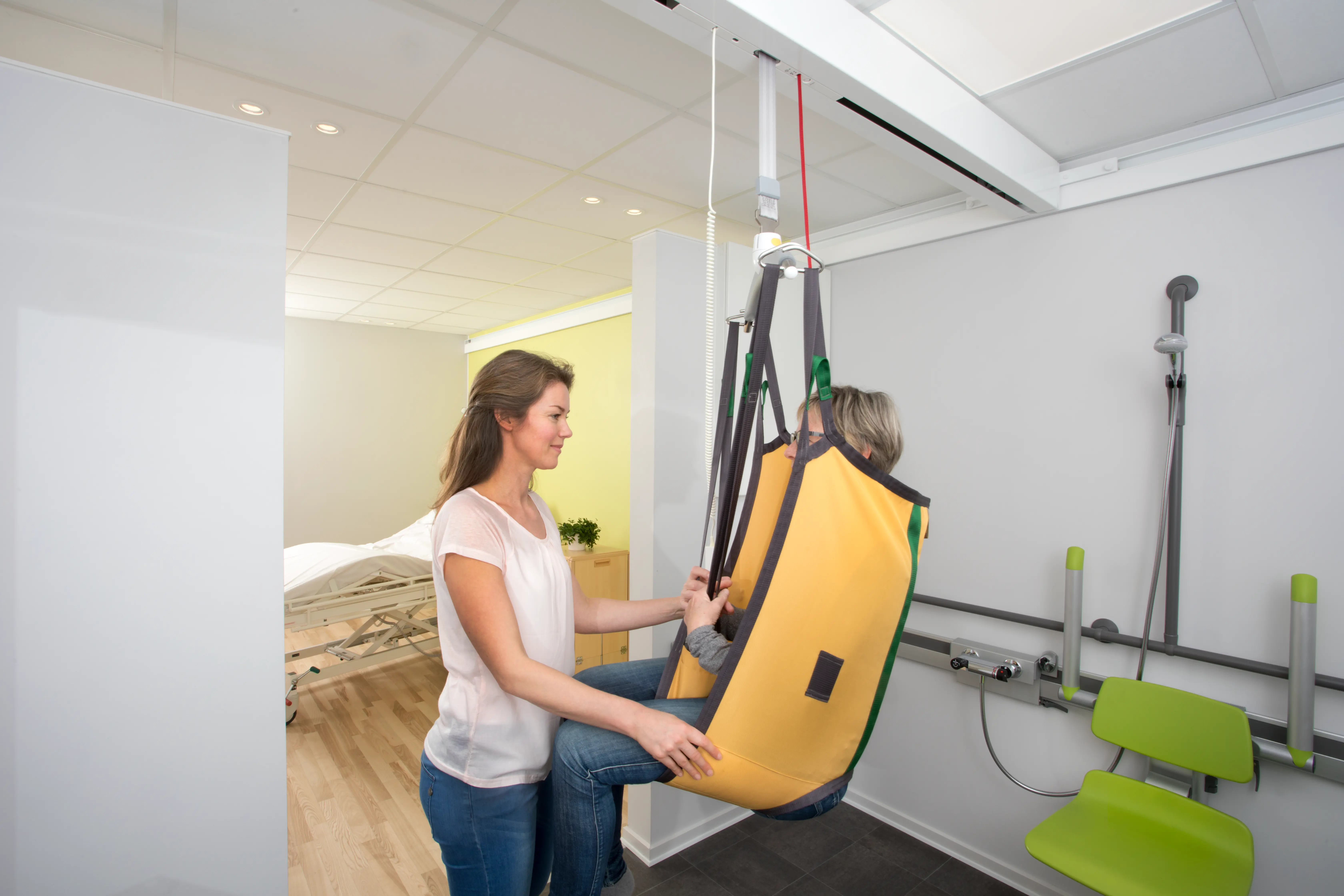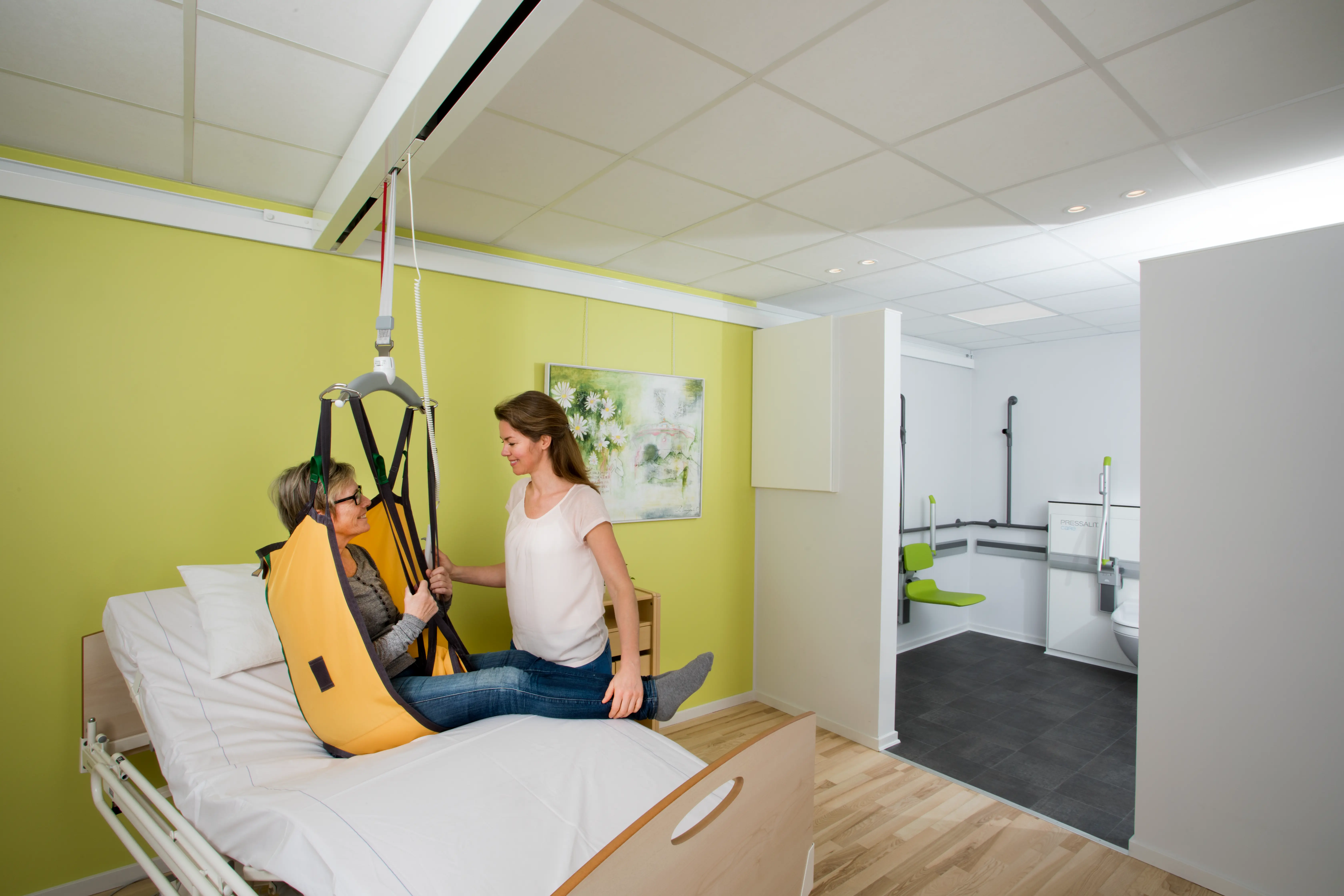A continuous rail system provides complete coverage and efficient transfer from room to room – from the bedroom to bathroom, for example (see photo).