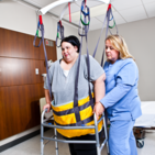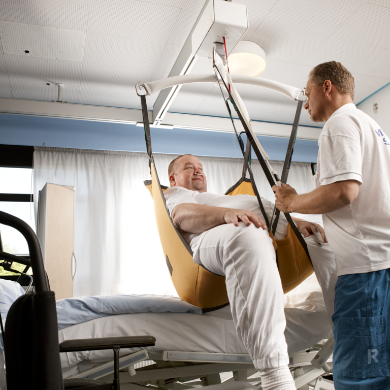 The Cross hanger is used when there is a need for an open lift, featuring a greater distance between the back straps and leg straps of the hanger. This makes it particularly suitable for moving patients with a large stomach or obese patients up to 400 kg.
