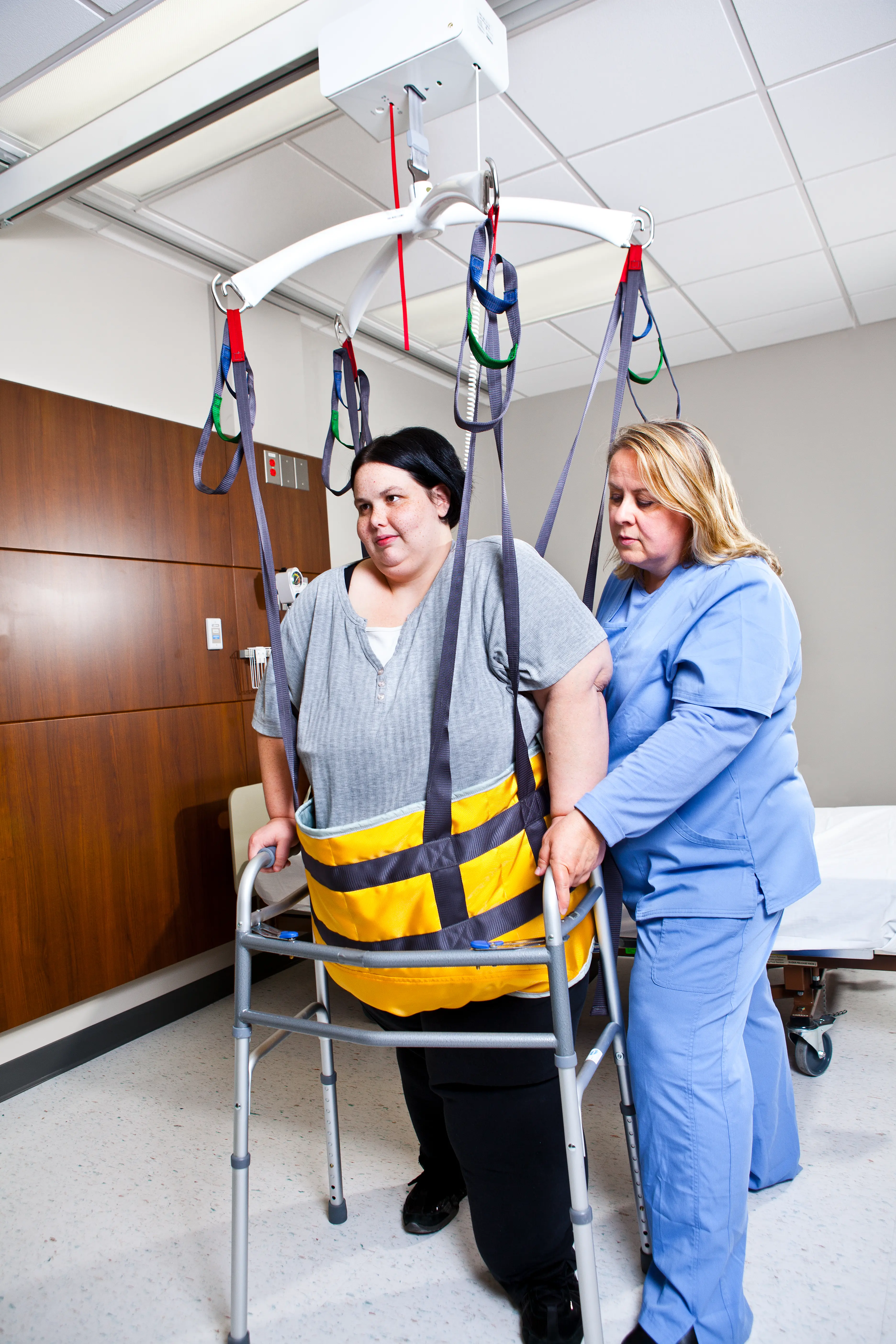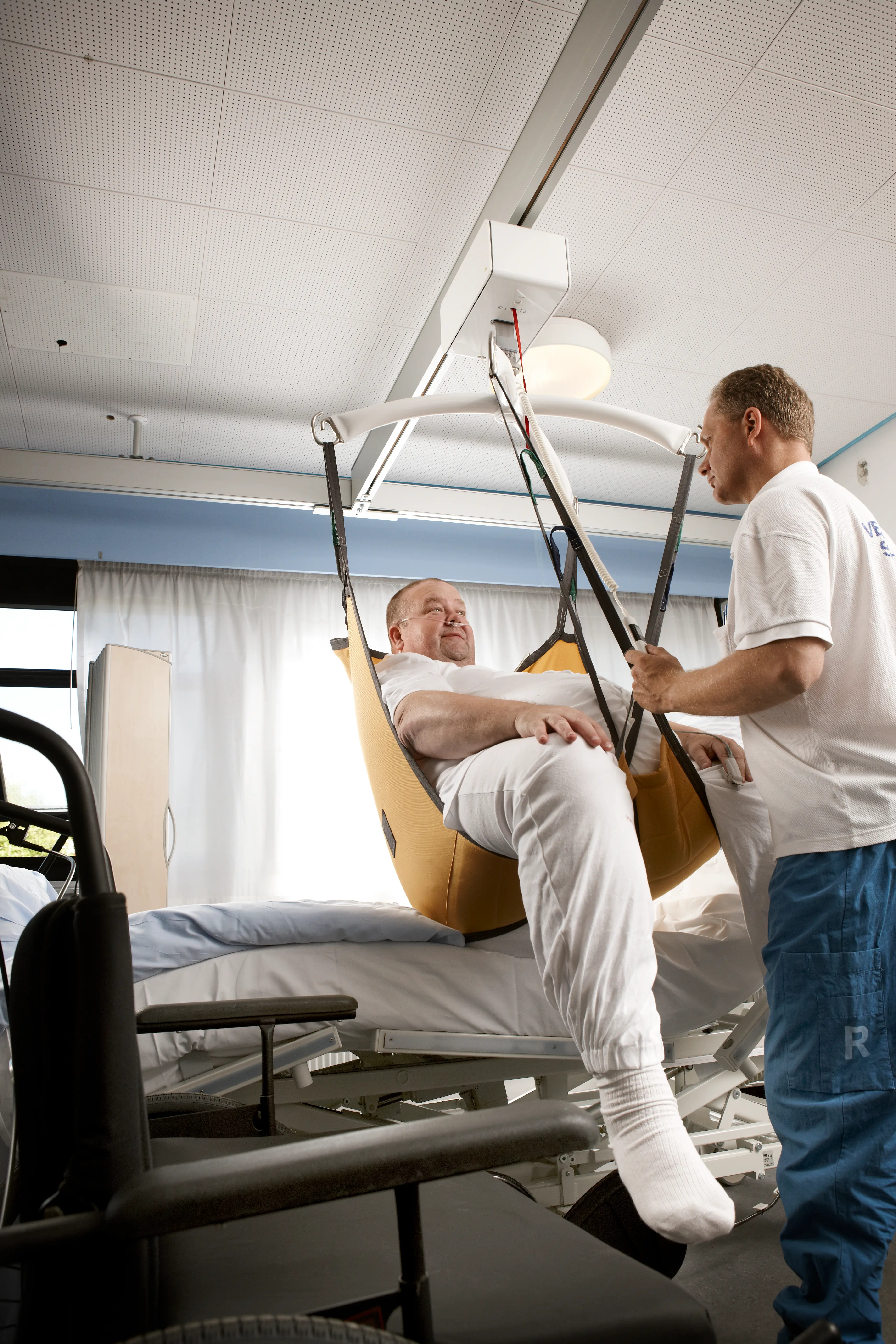 The Cross hanger is used when there is a need for an open lift, featuring a greater distance between the back straps and leg straps of the hanger. This makes it particularly suitable for moving patients with a large stomach or obese patients up to 400 kg.