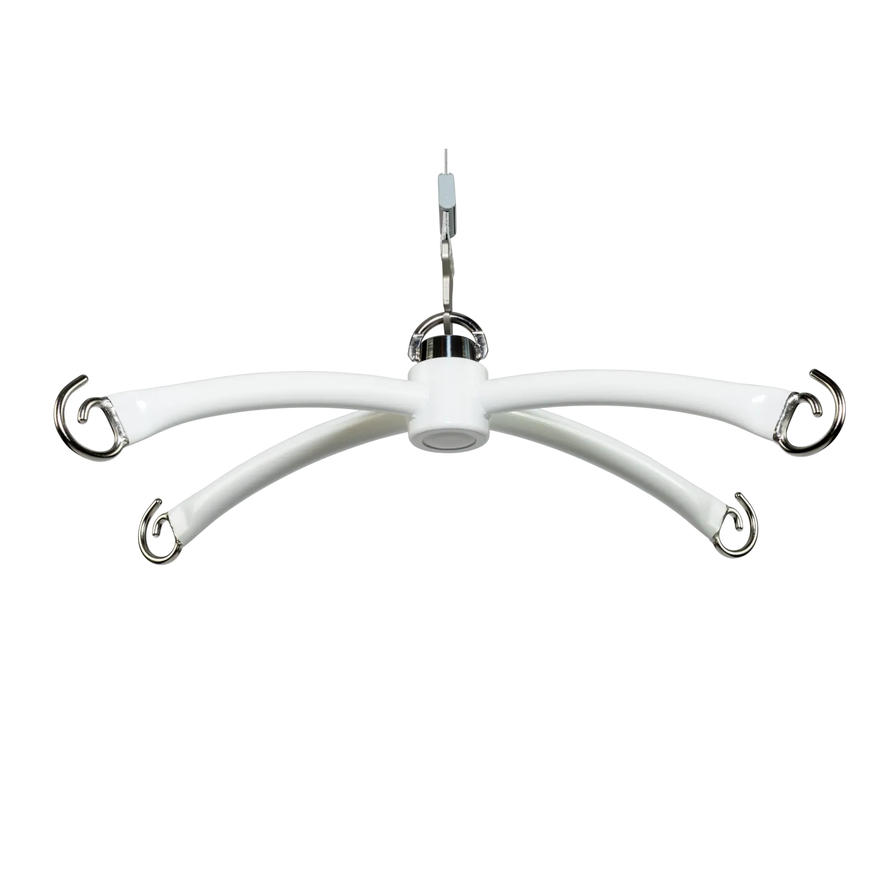 The Cross hanger has four suspension points, weighs 4.6 kg and is made of stainless steel, powder-coated in white.