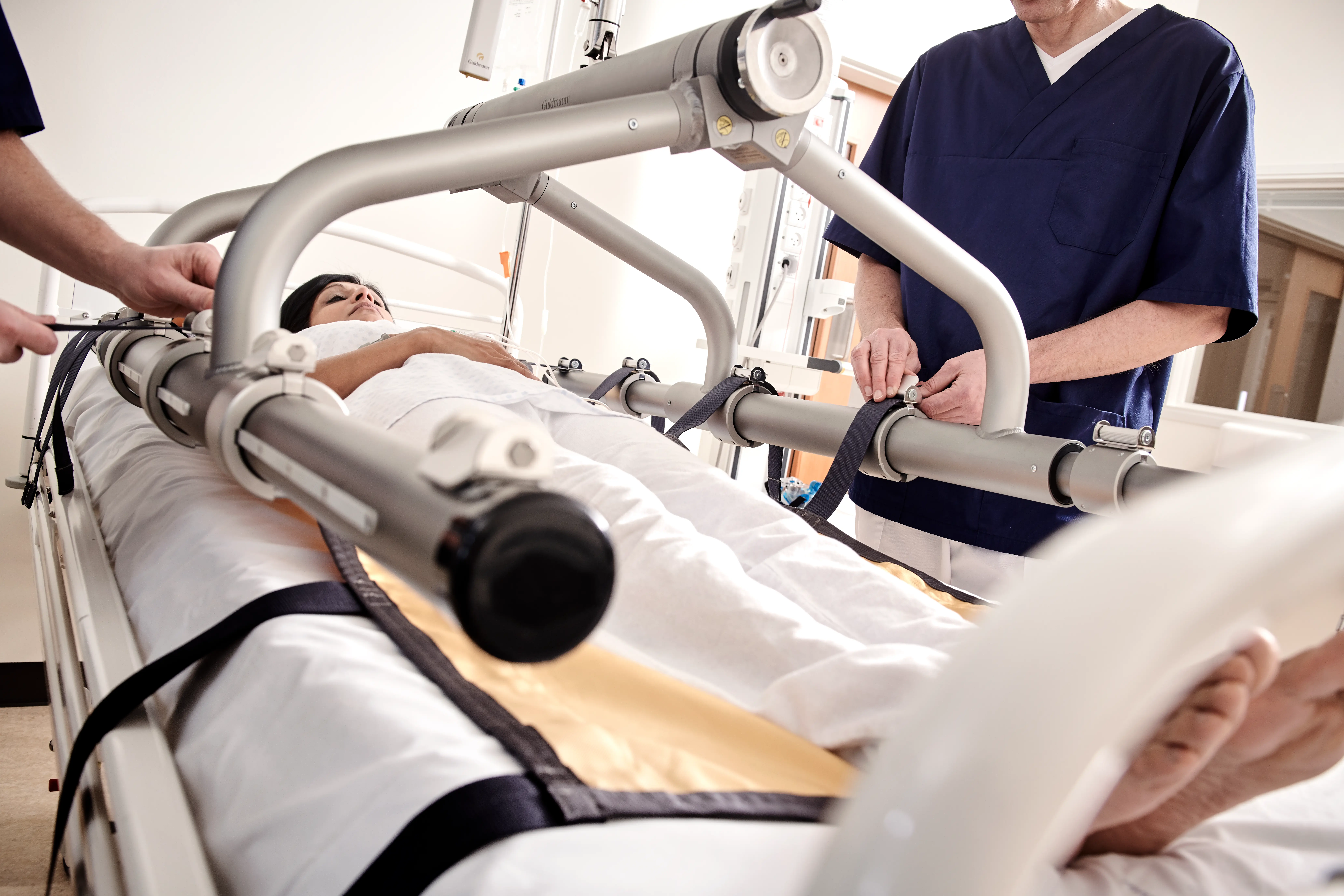 The Horizontal lifter is fully compatible with the Guldmann GH3 ceiling hoist and it is easy to control the centre of gravity of the lift via the lifting module’s hand control unit.