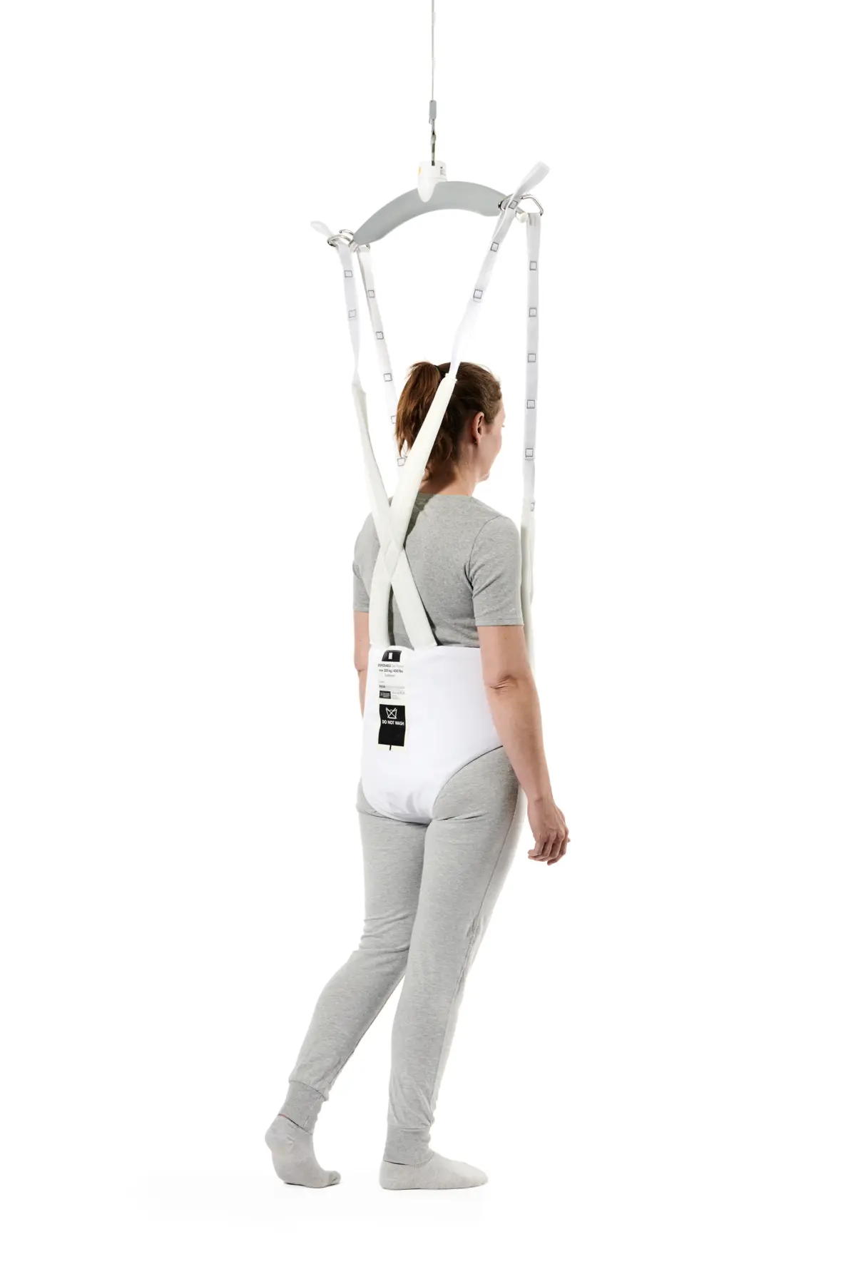 Dispose of the sling after the patient has been discharged, or immediately after use if it has become wet and/or soiled. It must NOT be washed. The sling has a do-not-wash indicator tag.