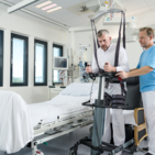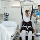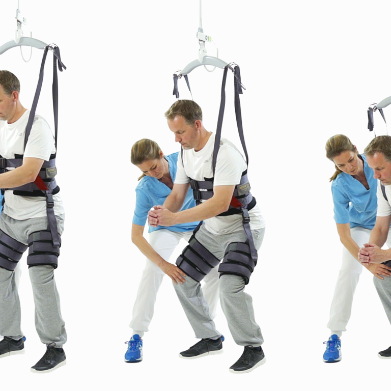 The sling supports the upper part of the body and has leg cuffs for enhanced safety. The Gait Trainer is ideal for the early mobilisation of patients, balance training, different kinds of standing or sitting exercises and gait training, and provides confidence and safety for both user and carer.
