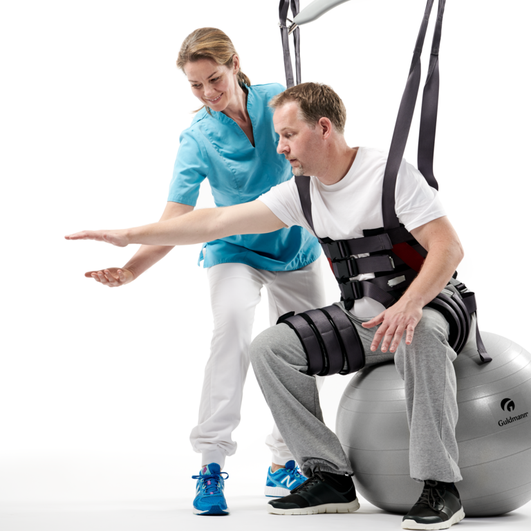 The sling is among other things designed for use in conjunction with the Guldmann Trainer Module, which is an optional feature available within the GH3+ hoist. The Trainer Module offers the possibility to use the hoist as a weight relief system in your patient rehabilitation/training program. It is possible to use the Gait Trainer sling with all of our ceiling hoists.