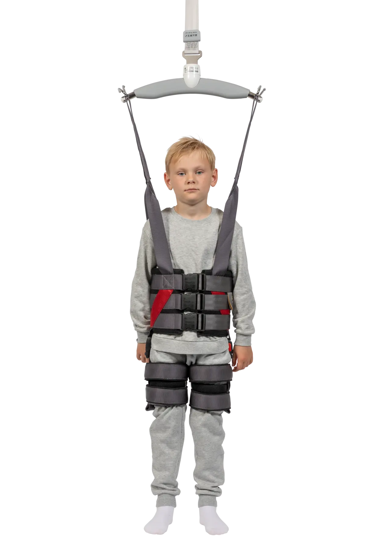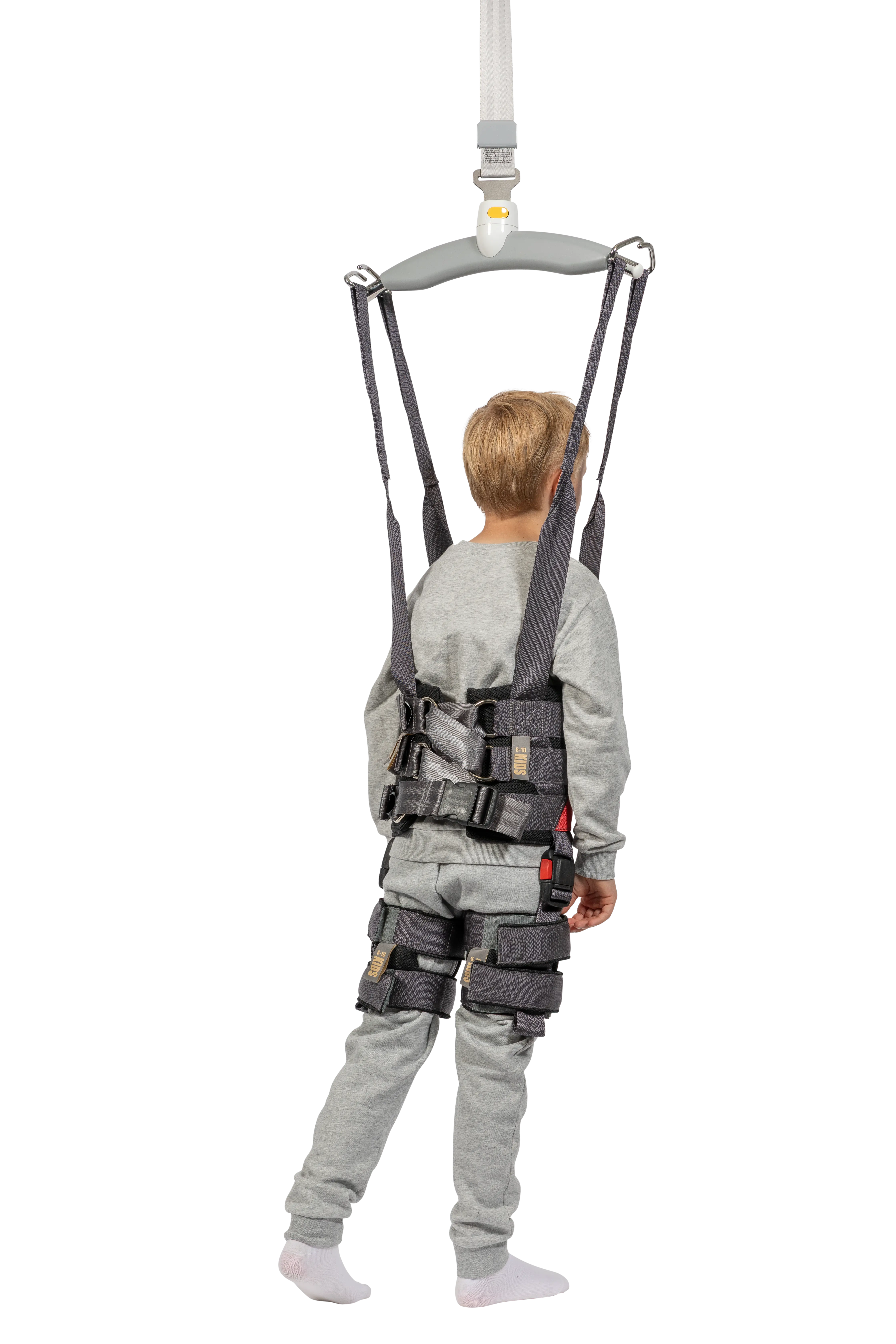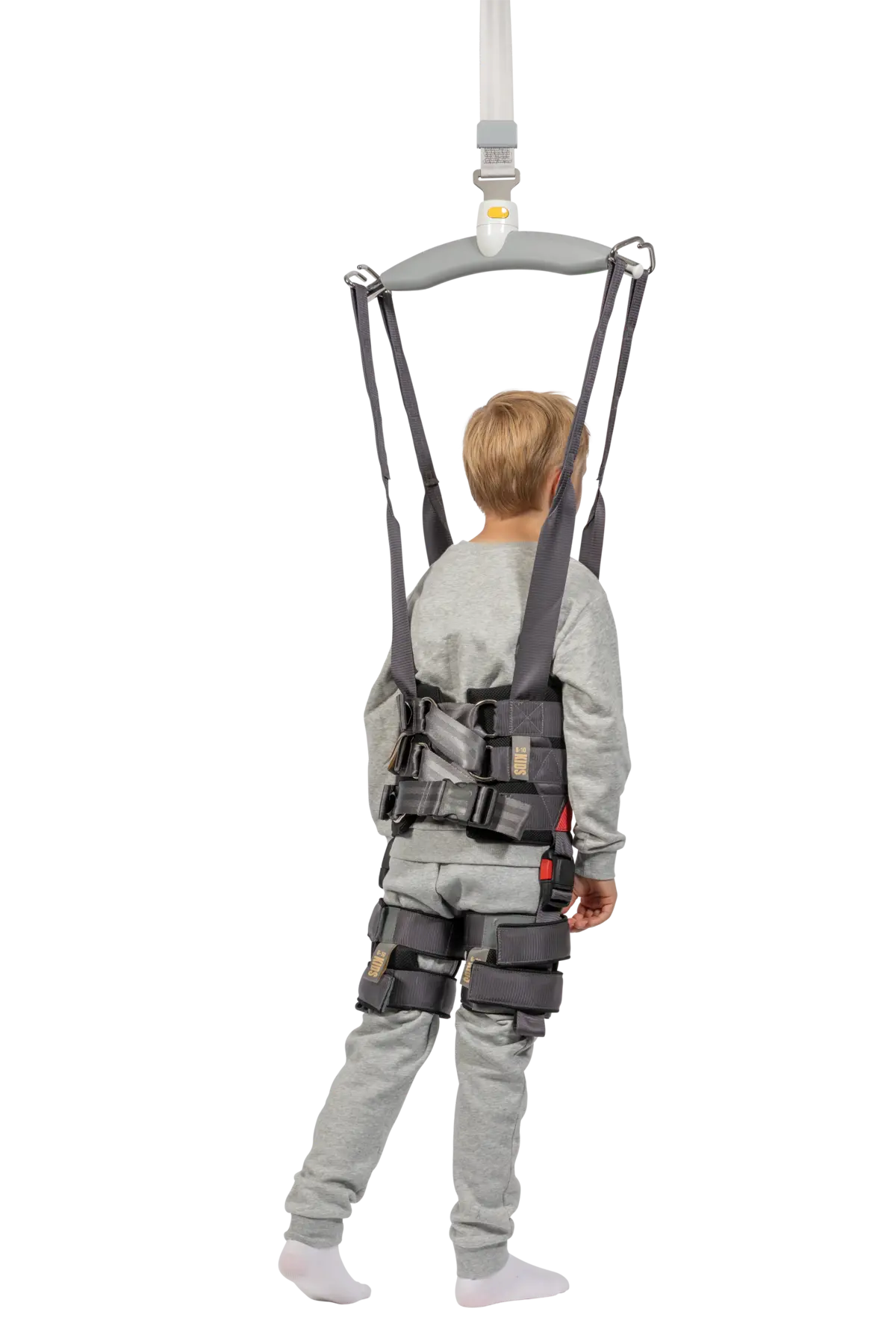 The Gait Trainer – Kids is a walking sling designed for children with sufficient leg strength to stand upright but who need support and safety during training due to reduced balance. It provides essential support during walking and gait training, helping the child maintain a standing position confidently and securely.