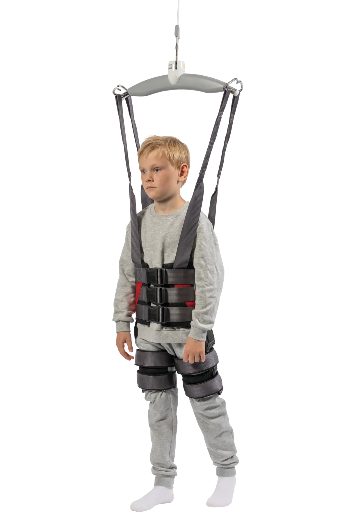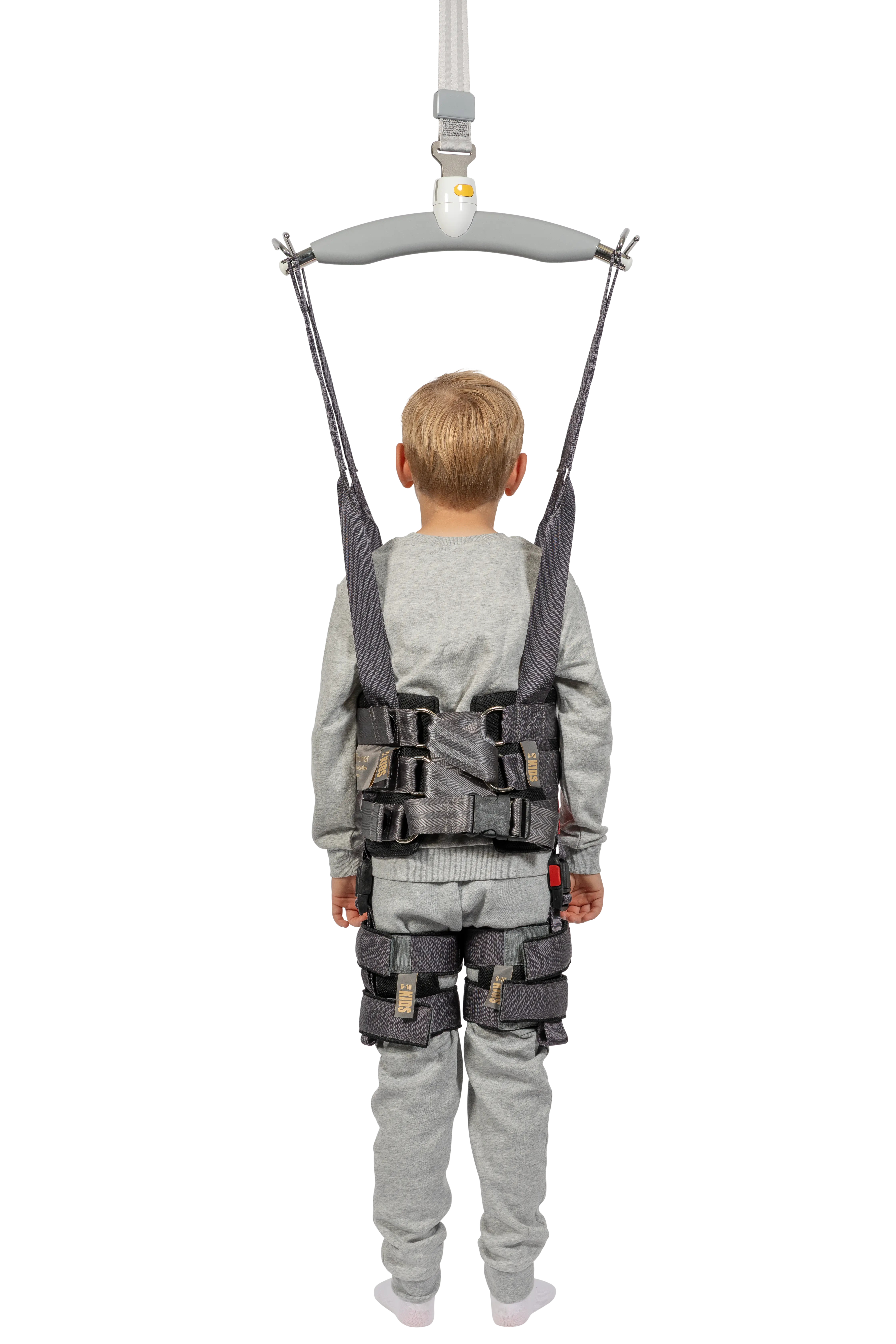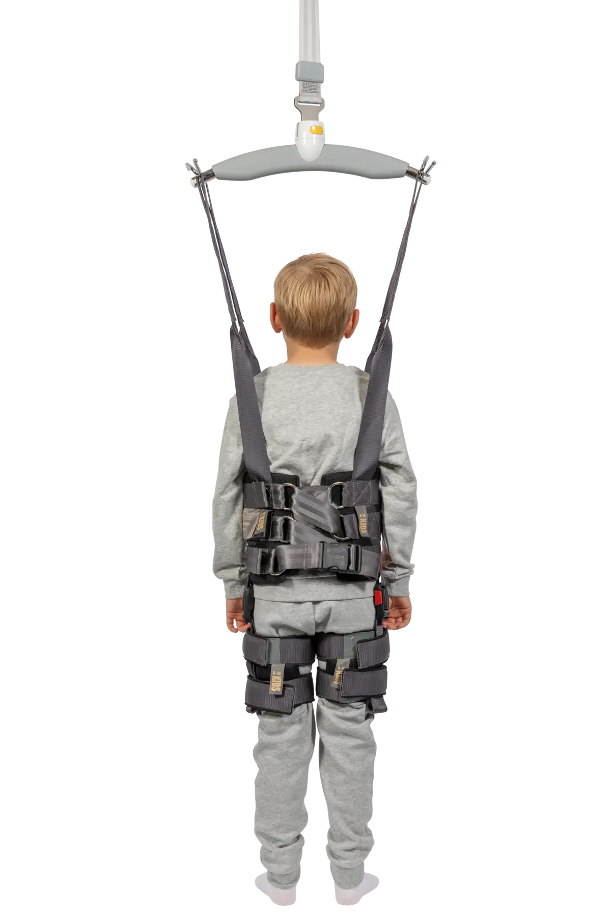 The Gait Trainer – Kids is a walking sling designed for children with sufficient leg strength to stand upright but who need support and safety during training due to reduced balance. It provides essential support during walking and gait training, helping the child maintain a standing position confidently and securely.