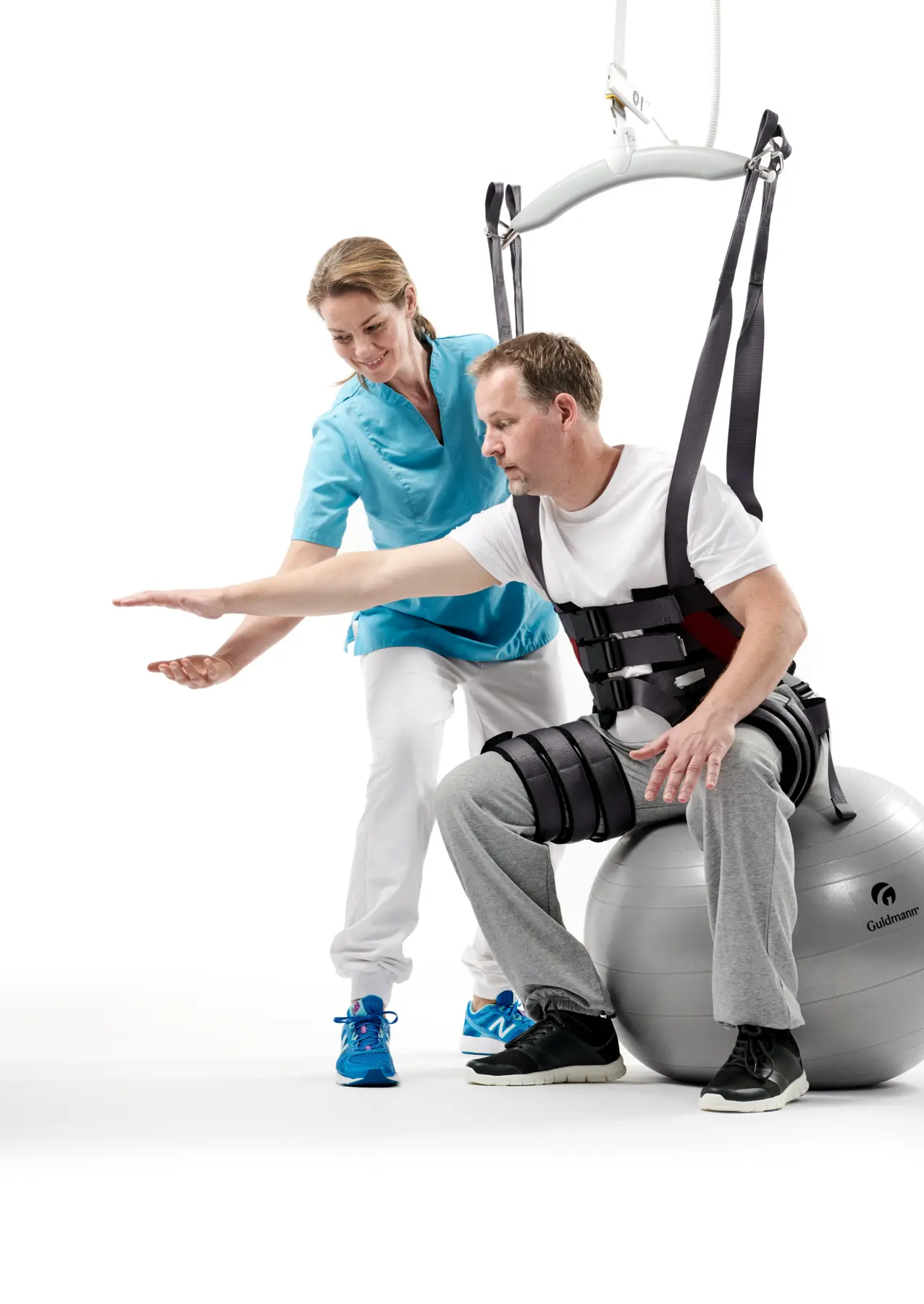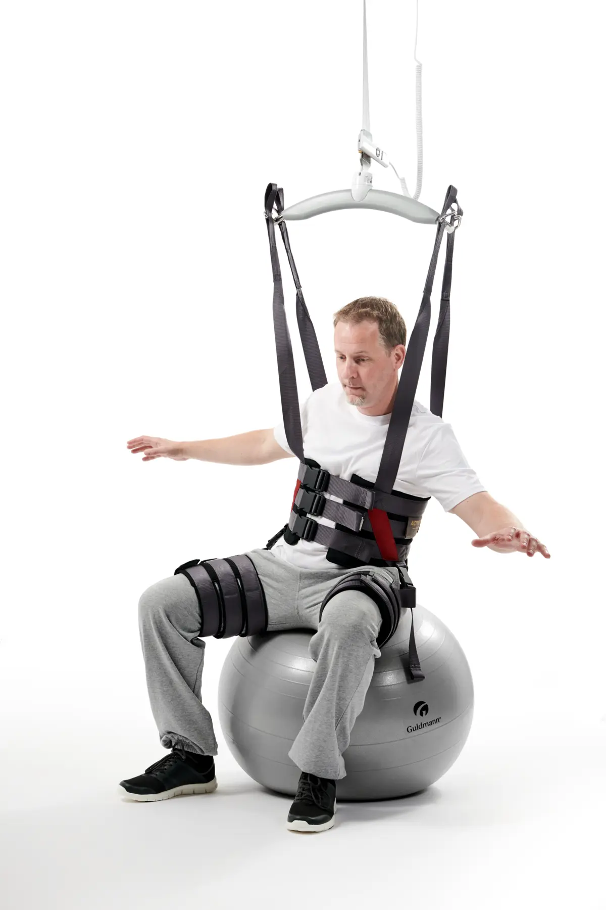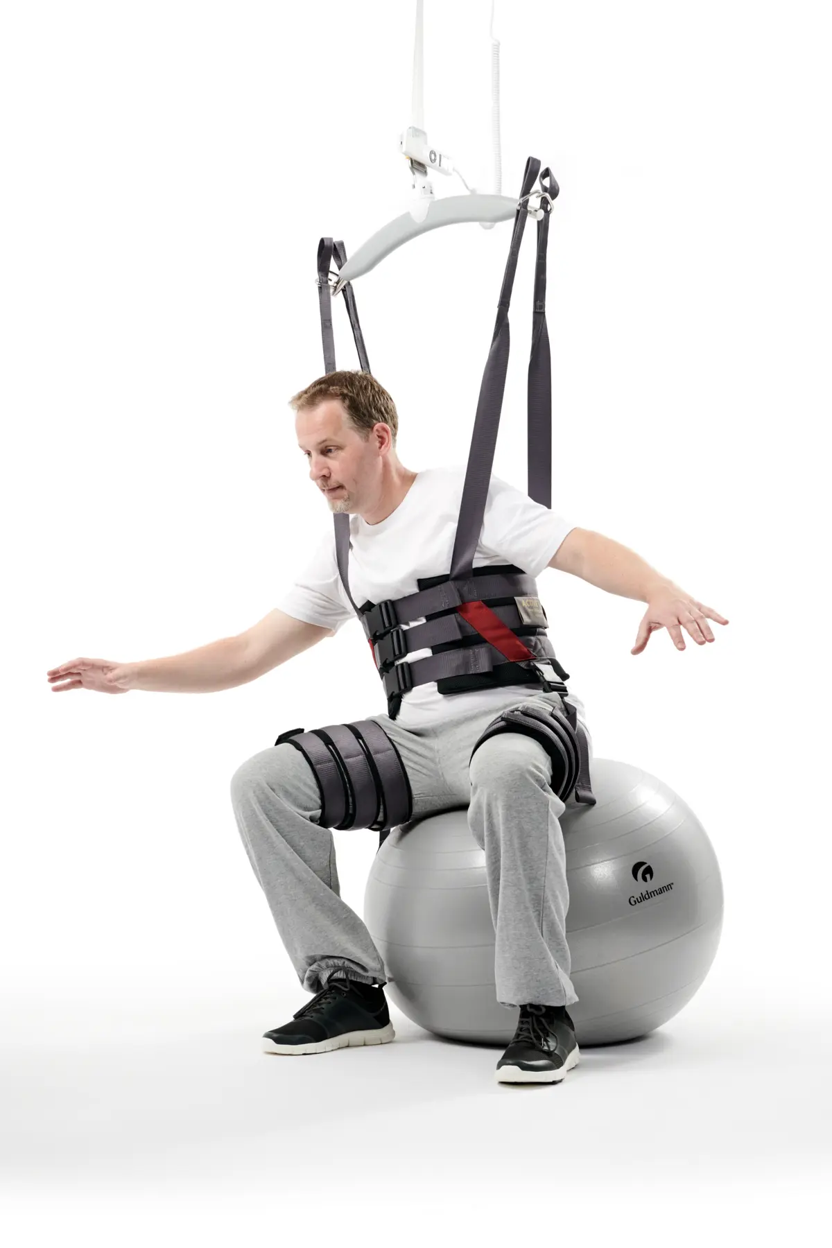 The sling is among other things designed for use in conjunction with the Guldmann Trainer Module, which is an optional feature available within the GH3+ hoist. The Trainer Module offers the possibility to use the hoist as a weight relief system in your patient rehabilitation/training program. It is possible to use the Gait Trainer sling with all of our ceiling hoists.