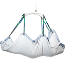 The sling supports the whole body including the head and lifts the user in a supine position to and from the bed, stretcher or floor. It is often used when changing bed linen, rolling the user to carry out hygiene tasks or repositioning the user in the bed.