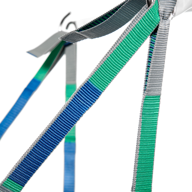 The repositioning sling has sling straps with "Smart loop" technology, using a new and innovative weaving technique to produce each sling strap in one piece. The simplified sling straps are straight and smooth without add-on loops. A colour code makes it easy to apply the sling correctly to the hanger.