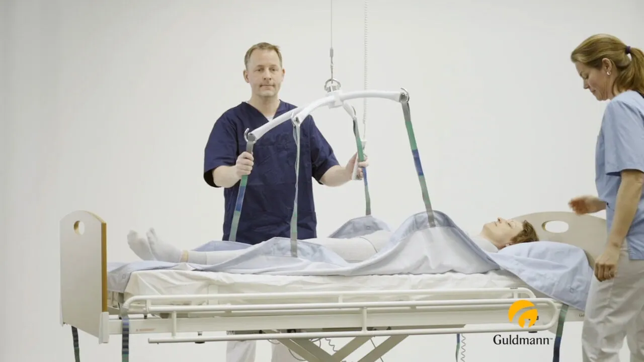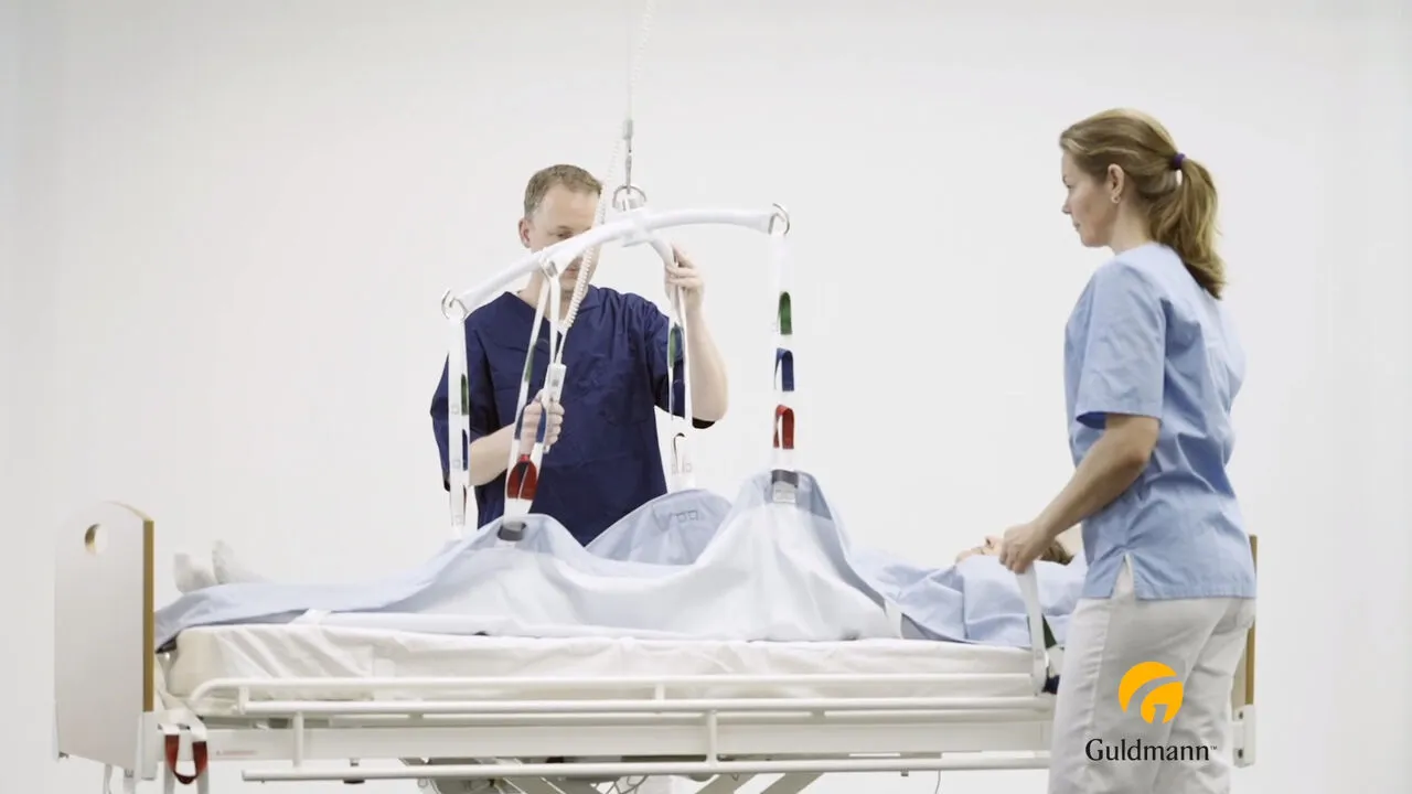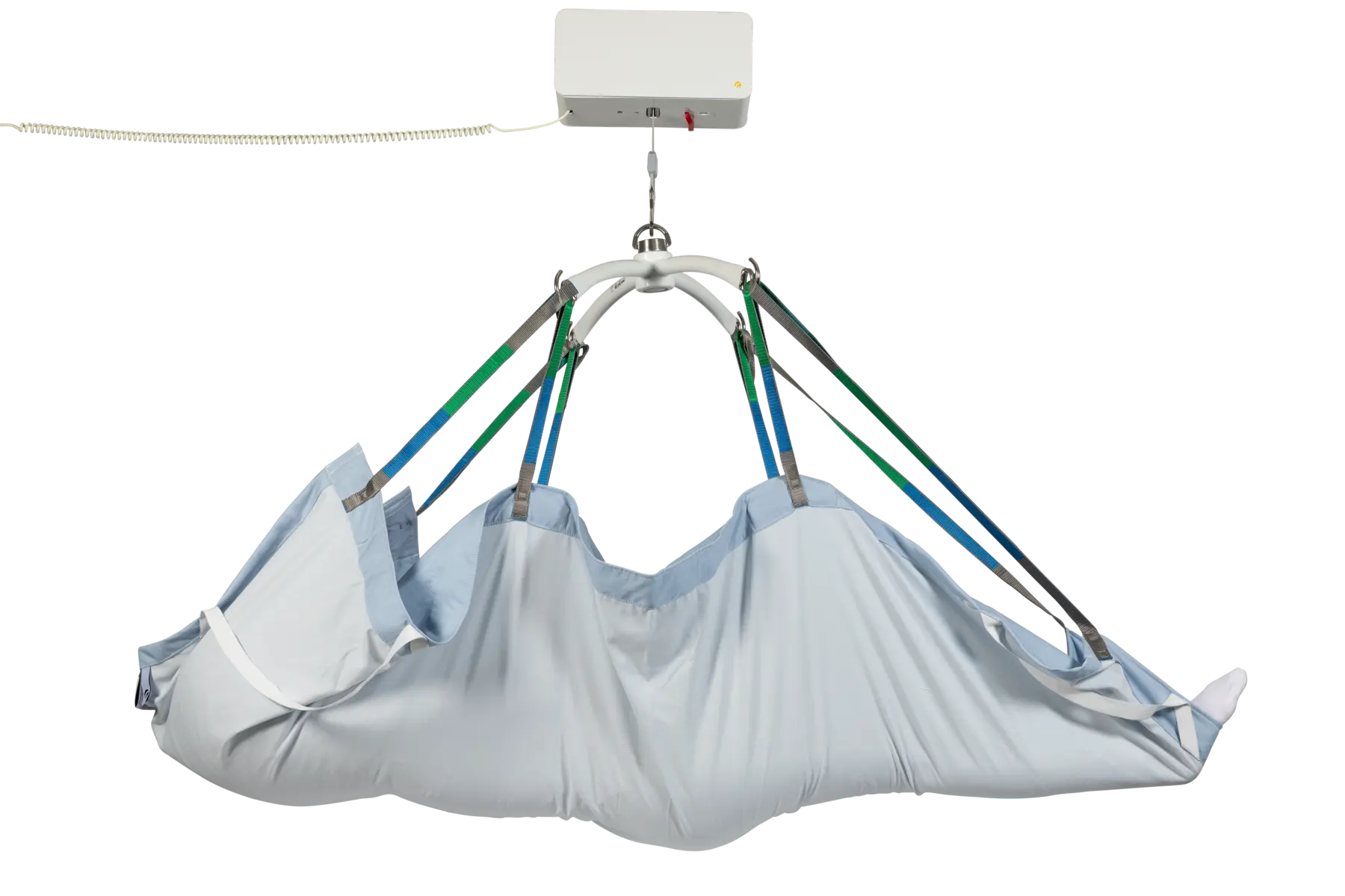 The repositioning sling can be used with all Guldmann ceiling hoists and mobile lifters.