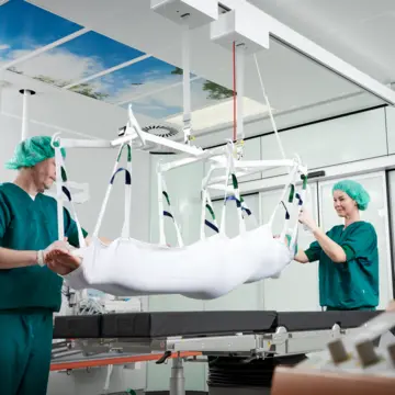 The working environment in an operating theatre is often distinguished by demanding work processes and limitations on available space. As a rule, operating theatres are packed with all kinds of equipment, so staff will often have little room in which to lift and/or move the patient.